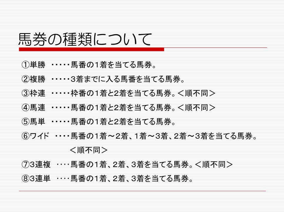 競馬の基礎 Twitter Facebook はてブ Pocket LINE コピー 2021.03.24 2021.03.19 競馬とは「レースで勝つ馬を予想する」事です。 またもうひとつの楽しみとして馬券の購入による、お金の配当があります。
